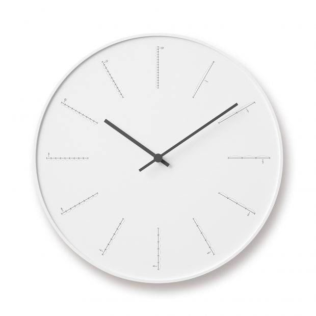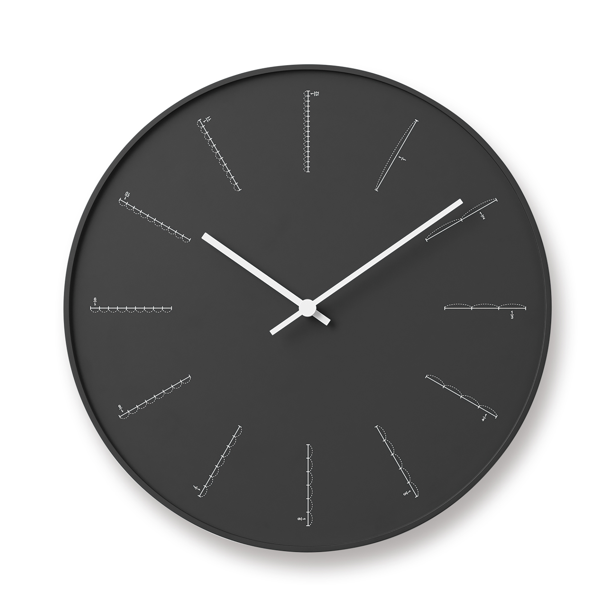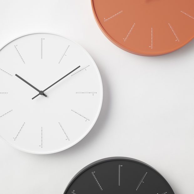 Wall ClocksLemnos wall clock The number of divisions within a single straight line is used to tell the time. The design expresses the idea of time gradually ticking away throughout the course of a day.