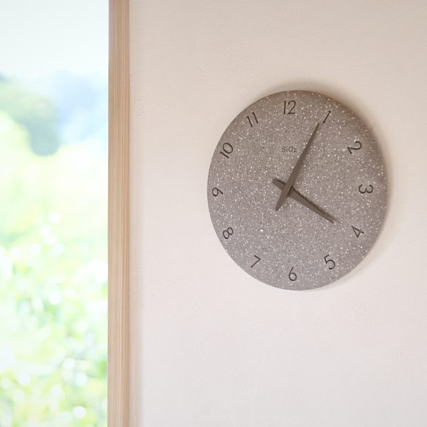 This is the third SiO2 CLOCK (diatomaceous earth clock) in the series, featuring the distinctive “Araidashi” washed finish.